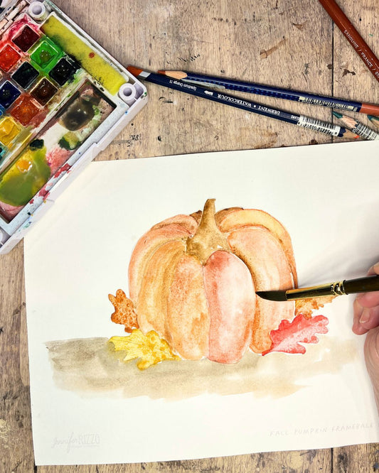 Watercolor Painted Pumpkins and Leaves-Saturday, October 5th 10:30am-12:30pm