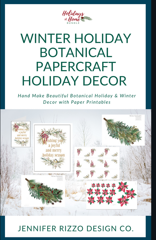 Winter Holiday Botanical Papercraft Decor Bundle-Digital Download