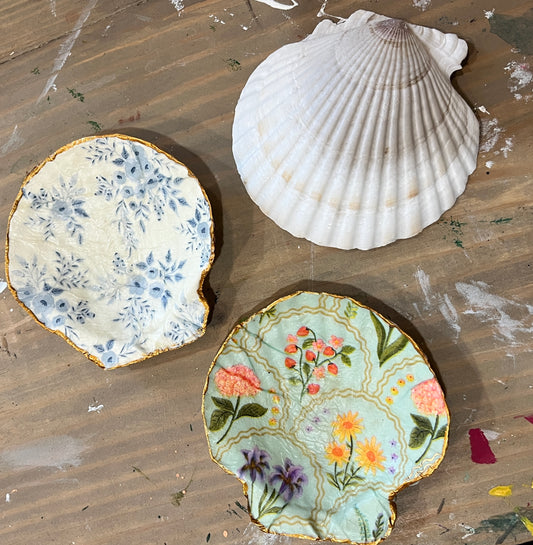 JRDC Creative Studio Box- Decoupaged Napkin Seashells Dishes
