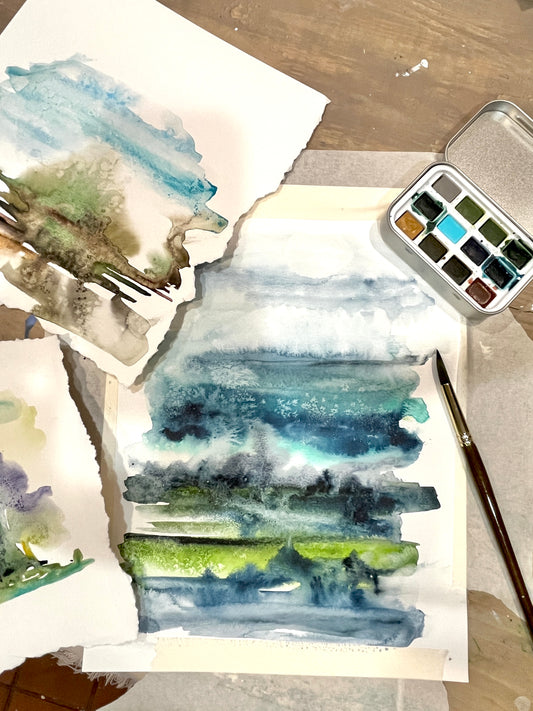 ONLINE ZOOM Color Flow Abstract Landscape Watercolor Workshop Wednesday, June 11th 6:30 pm-8:00pm