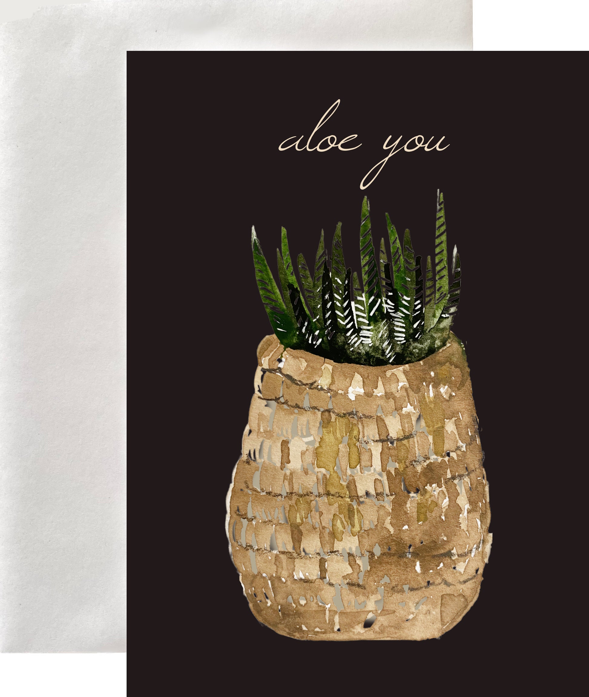 Our Aloe You greeting card with a cute plant illustration is the perfect card for the plant lover in your life and that special someone.