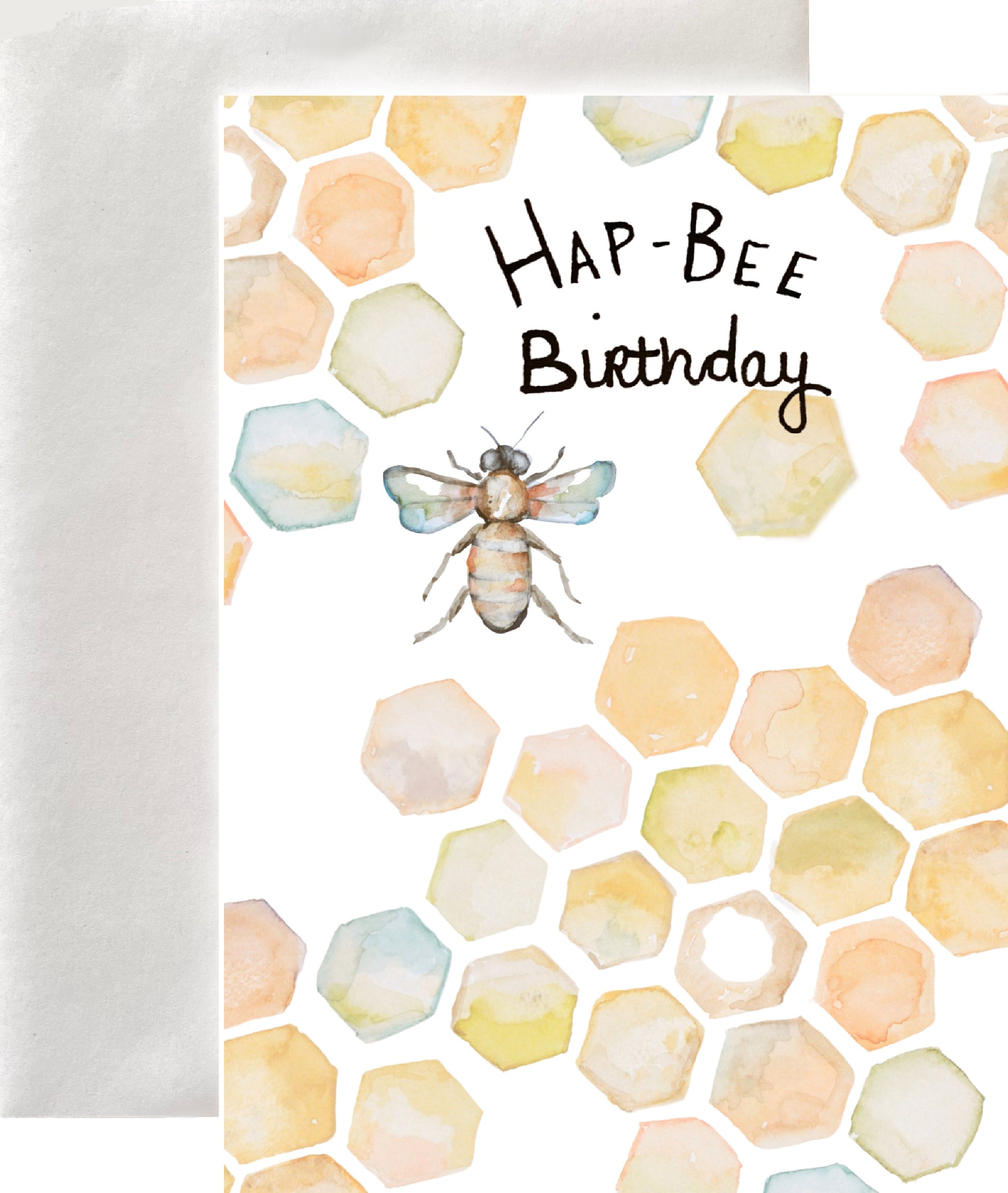 Our Hap-Bee Birthday greeting card is an adorable way to say Happy Birthday and features a lovely illustrated bee with honeycomb and the cute "Hap-Bee Birthday" writing. Perfect for the nature lover in your life or anyone who is having a birthday and enjoys a cute card!