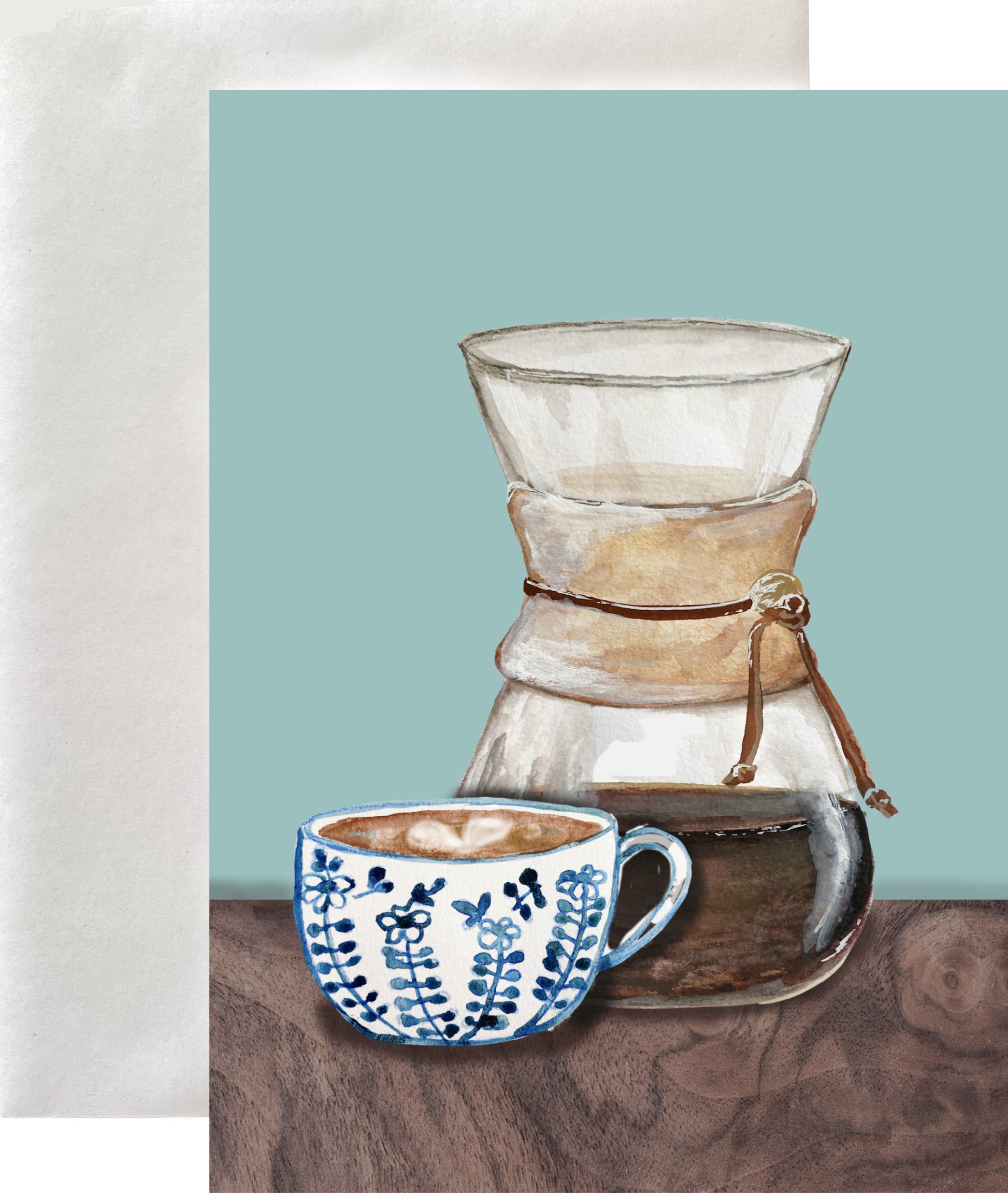 Our Morning Latte greeting card features a lovely illustrated coffee cup with flowers and nature detailing and a carafe containing coffee. The perfect card for the coffee lover in your life or that special someone. The ideal card for birthdays, thank you or just to say hello.