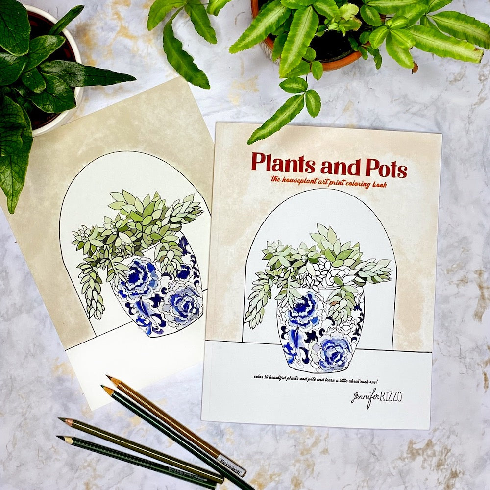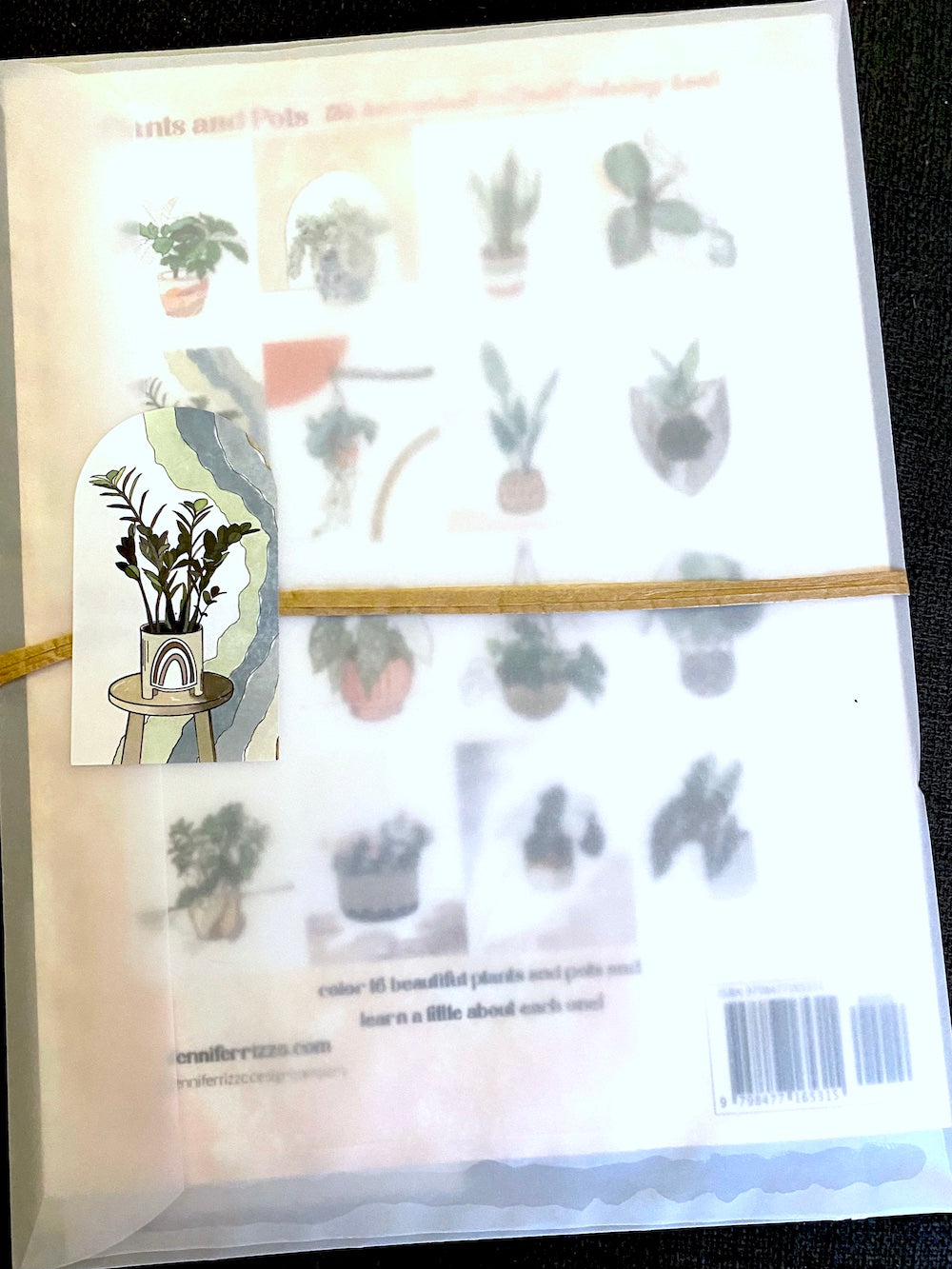 This version of the Plants and Pots coloring book includes a frameable art print and comes in a frosty vellum envelope and is sealed with a sticker ready for gifting.