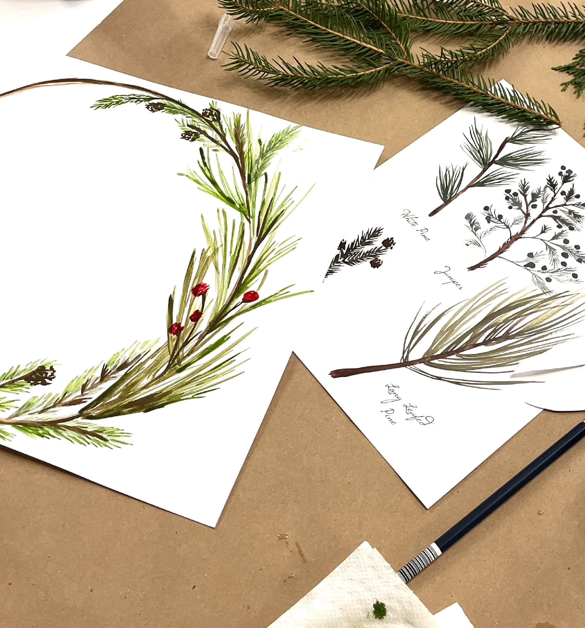 Watercolor Holiday Greenery: Friday, November 21st 10:30 am-12:30 pm
