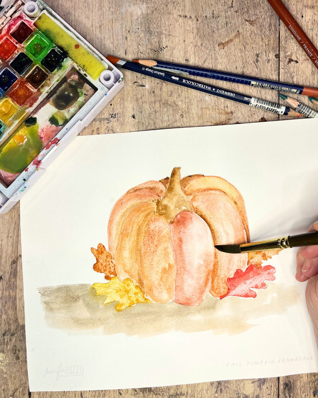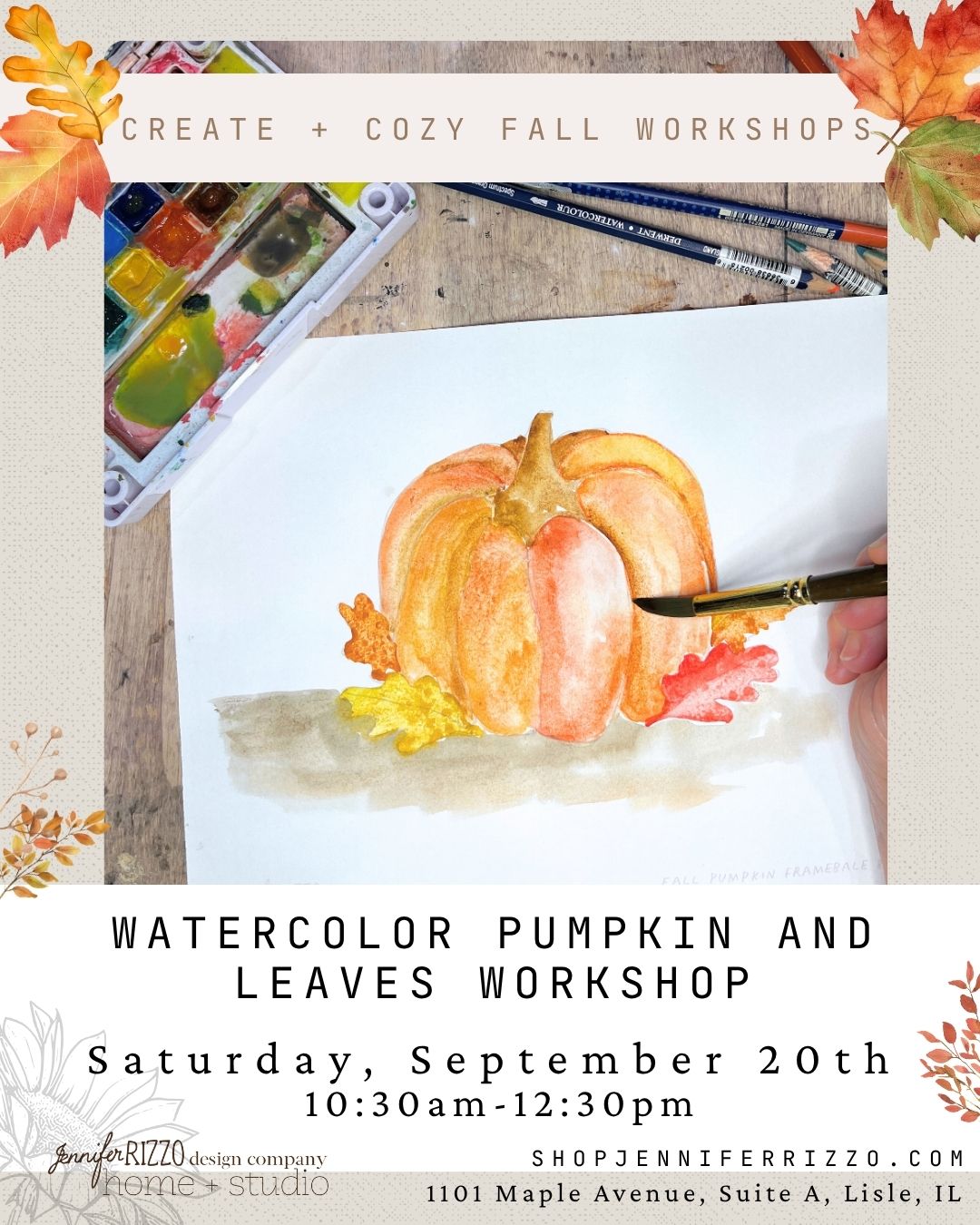 Watercolor Pumpkin and Leaves Saturday, September 20th 10:30 am-12:30 pm